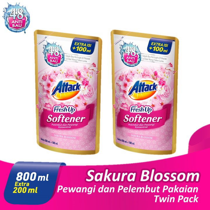 Attack Fresh Up Softener Sakura Blossom 800 Ml 100 Ml X 2